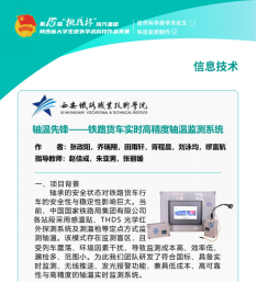 由赵佳成,张丽媛等指导,张政阳等提交的参赛作品《“轴温先锋——铁路货车实时高精度轴温监测系统》获特等奖;