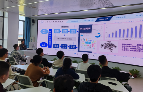 机械教研室主任邹俊俊为大家讲解了从“创意到落地”的创新实践路径,并带领学院创新创业团队,展示了两项优秀的创新产品。