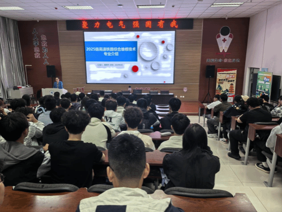 高速铁路综合维修技术专业介绍现场,殷艳萍老师详细阐释该专业在高铁运维领域的重要地位与发展前景,展示先进实训设备与技术,让100名新生对实践学习满怀期待。