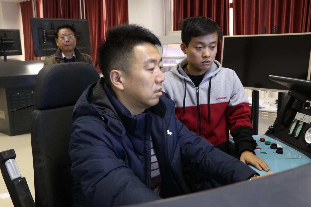 最后,席宝敏一行在李益民的陪同下考察了牵引动力学院实验实训中心,期间席宝敏还感受了CRH380AL动车组模拟驾驶设备。