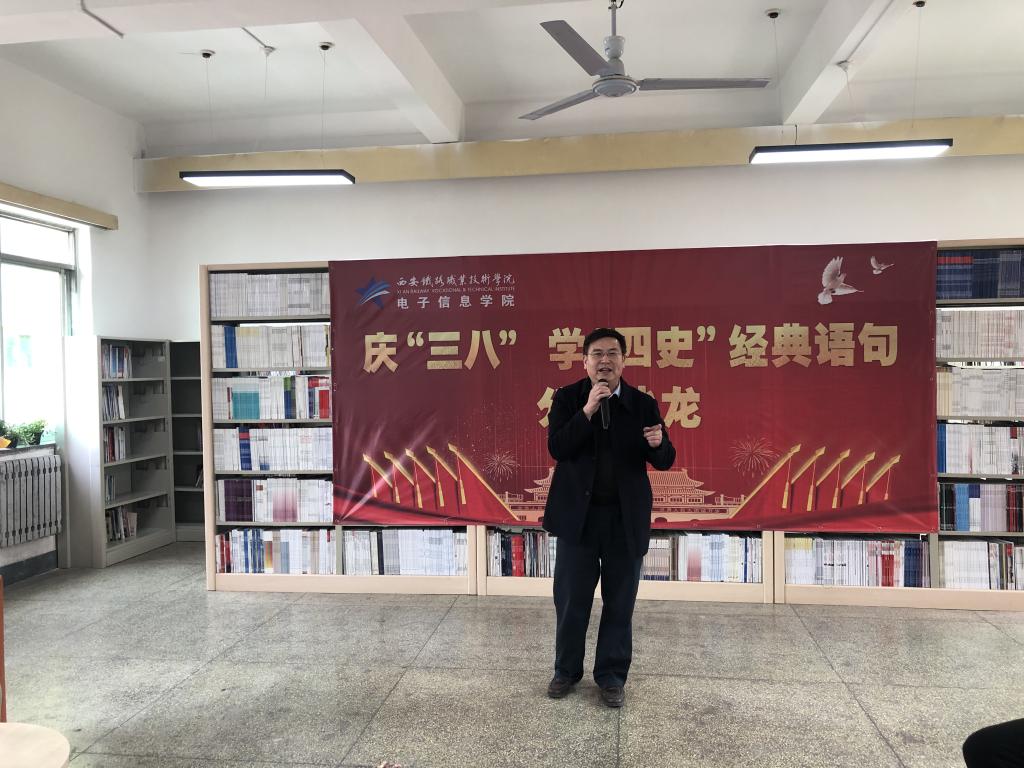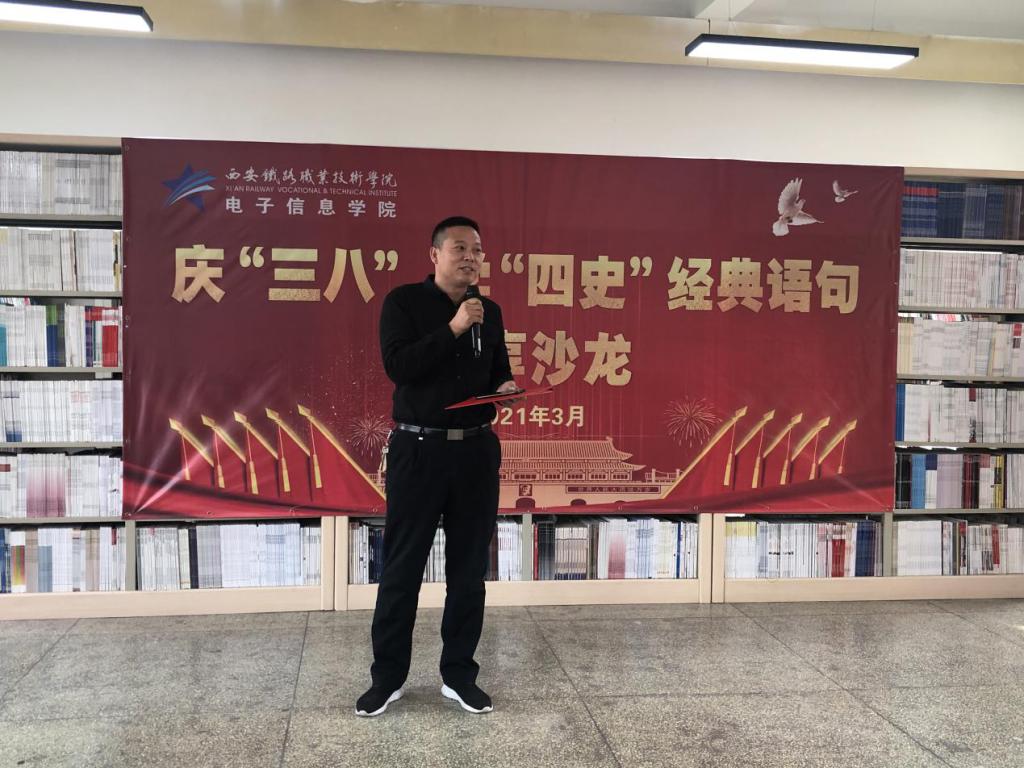 今年是第111个国际“三八”妇女节,3月5日下午,电子信息学院分会组织开展的庆“三八”、学“四史”经典语句分享沙龙活动在自强校区图书馆顺利举行,此活动是学院为庆祝中国共产党成立100周年,结合学校开展网上重走长征,推进“四史”学习教育活动而组织开展的一次主题活动。院工会副主席同颖葵、继教院副院长许晓华、自强管理处副处长马建平、电子信息学院党总支书记张伟敏、院长董奇、副院长冯国良与自强校区各职能处室、各教研室女教工等70余人参与了此次分享会。