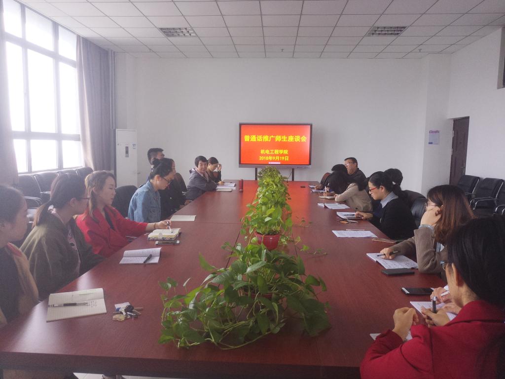 为进一步宣传《中华人民共和国国家通用语言文字法》,发挥普通话推广过程中学校的优势作用,9月19日下午,机电工程学院在会议室召开普通话推广工作师生座谈会。师生代表20余人参加了座谈会。永利官网党总支书记张雅兰参加并讲话。