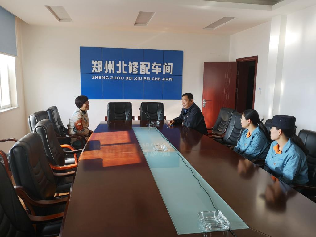 在郑州北车辆段修配车间会议室,和晋秦一行与修配车间党总支书记徐斌、王雅芸及同在修配车间工作的我院2011届毕业生党员李薇进行了座谈。徐斌在座谈中对我院的毕业生给予了高度肯定,王雅芸和李薇现都是修配车间的技术骨干,特别王雅芸今年还获得了“火车头奖章、全路技术能手称号”。和晋秦在座谈中详细了解了王雅芸在单位的优秀事迹,与永利官网毕业生进行交流,还就铁路企业现在的用人标准、用人需求同徐斌做了沟通交流。