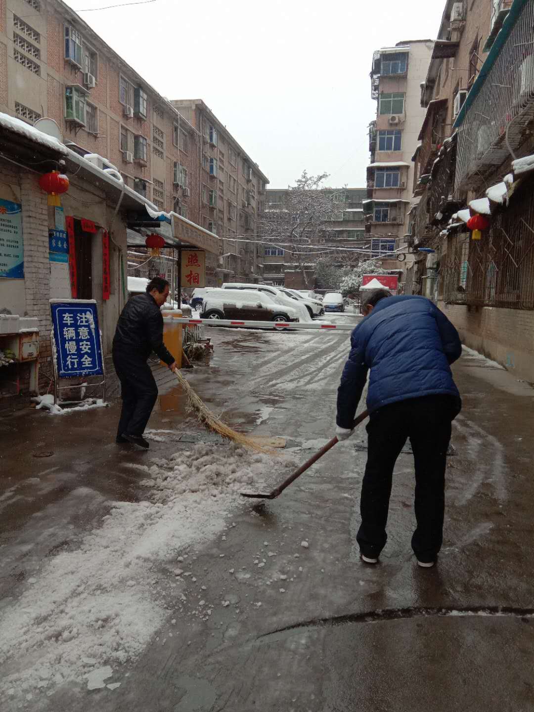 在扫雪过程中,大家争先恐后,干劲十足,凛冽的寒风,丝毫没有挡住大家的扫雪热情。经过共同努力,各个家属院以及大门外都清扫出可通行的路,为居民群众的安全出行提供了便利。