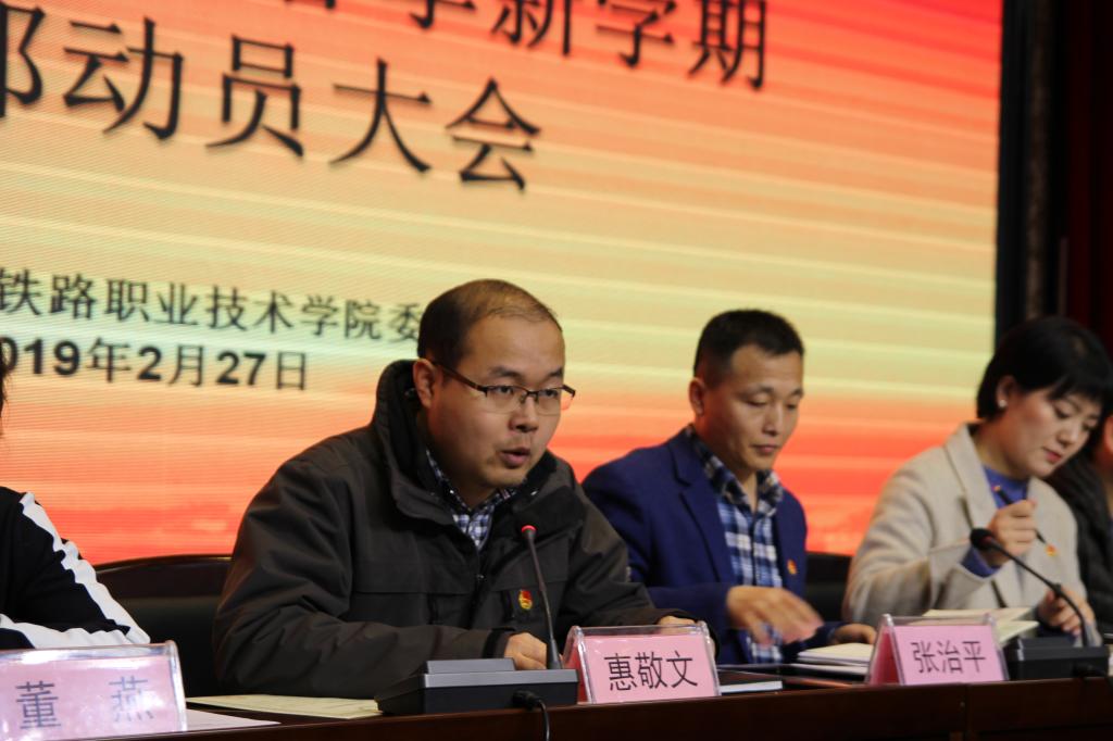 2月27日,院团委在港务校区召开2019年春季新学期团干部动员大会。院团委副书记张治平、团委办公室主任朱叶,临潼校区团委副书记惠敬文、各二级学院团总支书记、团委老师以及来自全院200余名学生团干部代表参加会议。