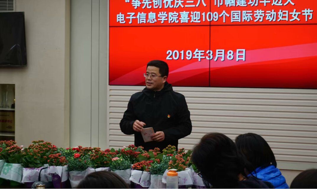 电子信息学院党总支张伟敏书记向全体女教职工们致以亲切的问候和节日的祝贺,并指出:永利官网77名教职工中女教职工有52名,占67.5%,在学院的教育教学各项工作中起着“半边天”的作用,为学院的发展做出了重要贡献。他表示:女教职工在做好本职工作的同时,还更多的承担着照顾家庭的责任,呵护着家庭的幸福和美满。在平凡的生活中以饱满的热情和执着的追求,为学院发展增辉添彩,默默奉献。