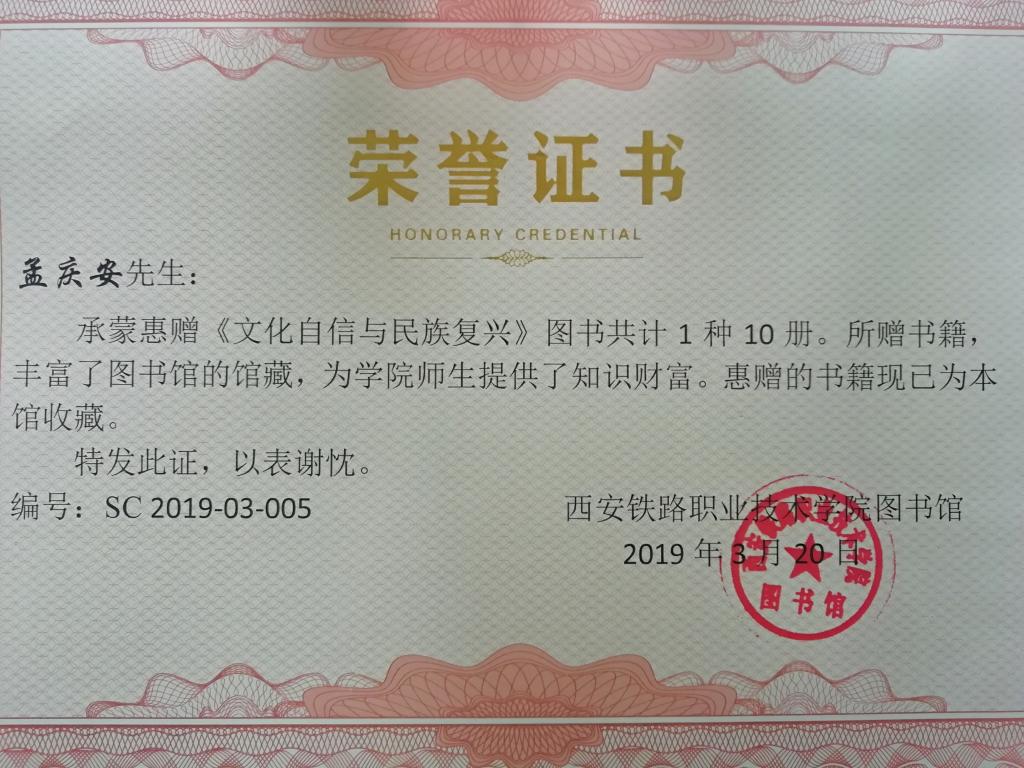 3月20日,企业退休干部孟庆安为图书馆捐赠《文化自信与民族复兴》图书共10册。图书馆馆长袁素瑛接受赠书并举行简单的赠书仪式。