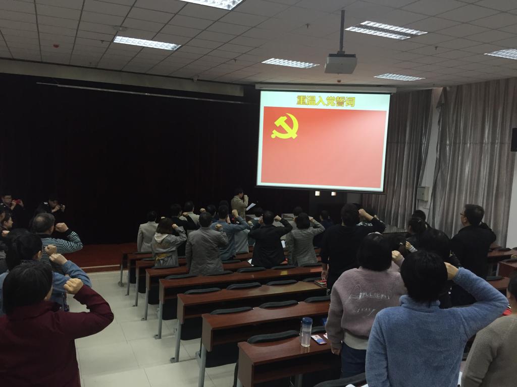 会议在雄壮的《国歌》声中拉开帷幕。会议开始,全体党员面向党旗重温了入党誓词,庄严宣誓,对党忠诚,为共产主义奋斗终生。党总支书记张雅兰在会上做党员亮身份活动动员讲话。她援引“一个党员一面旗帜,一个支部一座堡垒”、“平常时候看得出来、关键时刻站得出来、危急关头豁得出来”等经典语句,指出共产党员要始终牢记为人民服务的宗旨,时刻以合格党员的标准严格约束自己的言行,要在工作、生活、学习中创先争优、走在前列。做合格党员就要增强身份自信,敢于“亮身份”,并将其视为“必修课”。张雅兰强调,党员亮身份,就是亮出党员身份接受群众监督;党员亮身份要敢于亮底气;党员亮身份就是要亮业绩、亮奉献。党员教师要以党员这一身份为荣,更要为这一身份增添光彩。