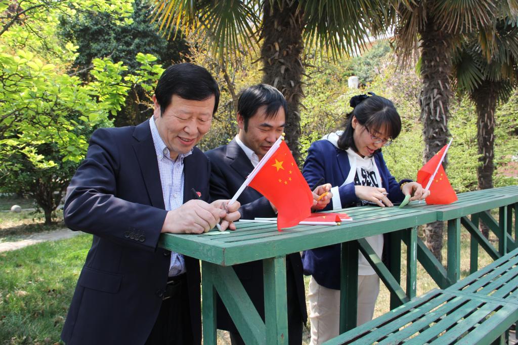 “我和我的祖国,一刻也不能分割,无论我走到哪里,都流出一首赞歌……”,4月4日中午,《我和我的祖国》这首优美动人的旋律在自强校区詹天佑广场上空飘扬,这是304am永利集团官网交通运输党总支组织党员教师开展的特色主题党日的开场活动。此次主题党日活动分合唱、总支书记提寄语、党员代表亮决心、全体党员签名承诺、重温入党誓词、合影留念六个环节,旨在贯彻落实党的十九大“不忘初心、牢记使命”的要求,引导党员强化党性观念,增强“四个意识”、坚定“四个自信”、做到“两个维护”,在新时代更好地发挥高校教师党员的先锋模范作用,踏踏实实做大国工匠的筑梦人。