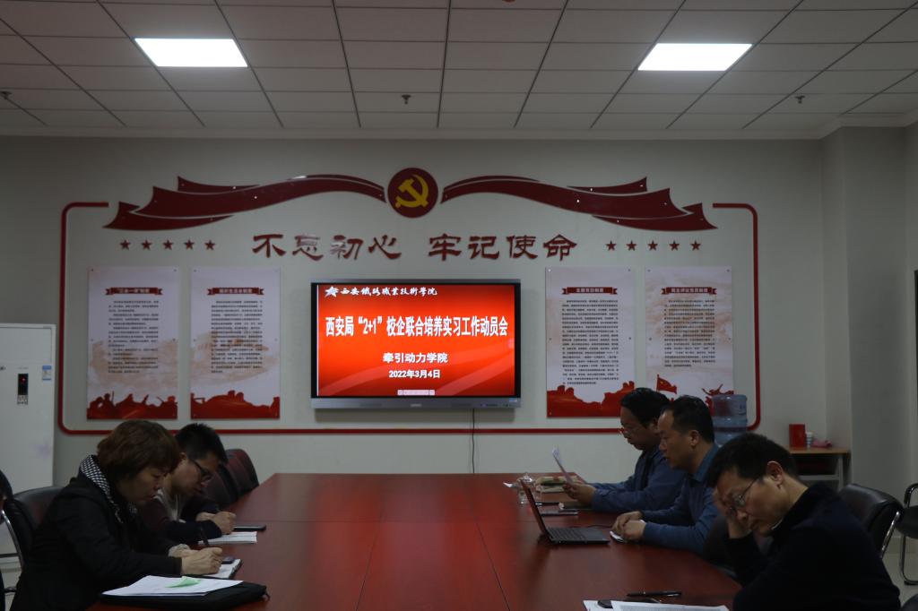 3月4日下午,牵引动力学院在701召开2022届西安铁路局“2+1”校企联合培养实习工作动员视频会。会议由2022届实习管理教师刘文峰主持,牵引动力学院院长李益民、党总支书记李贞伟、副院长林辉、学工办主任陈广勇及实习相关工作教师参会。