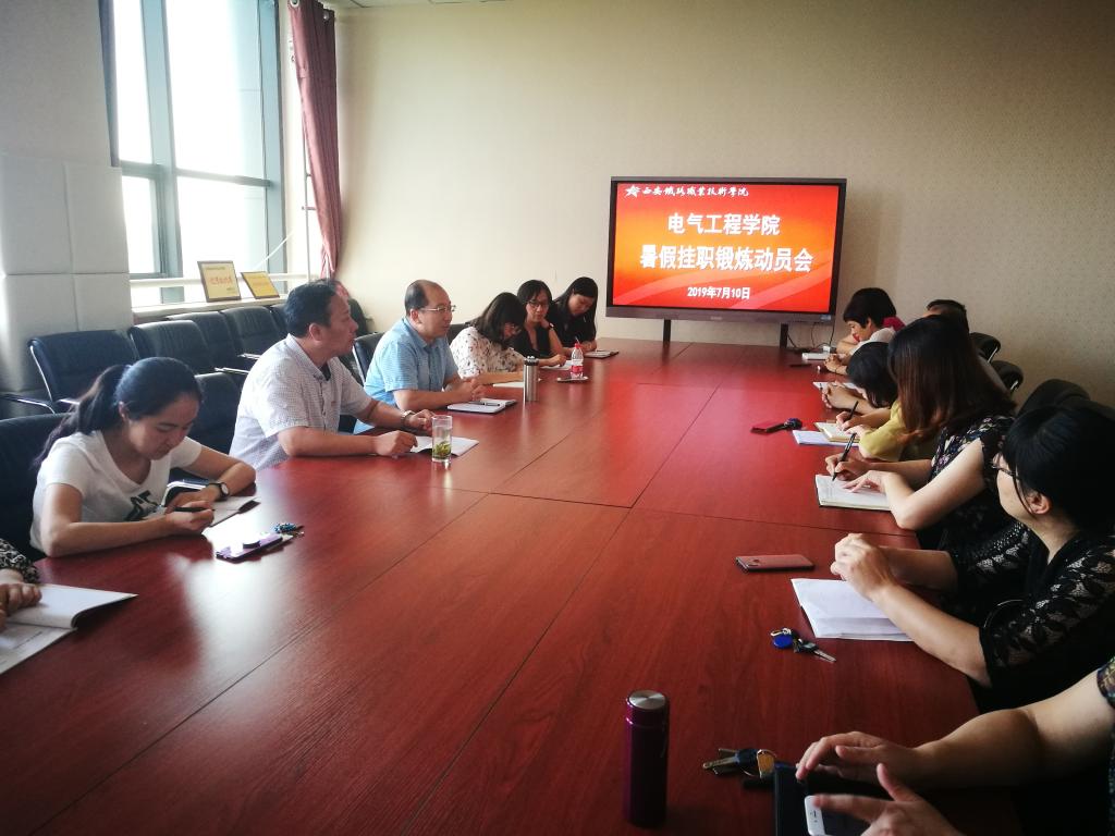 7月10日下午,电气工程学院院长李栋在电气工程学院813会议室主持召开教师暑期实践锻炼动员会,教师发展中心主任李贞伟应邀参加了动员会。