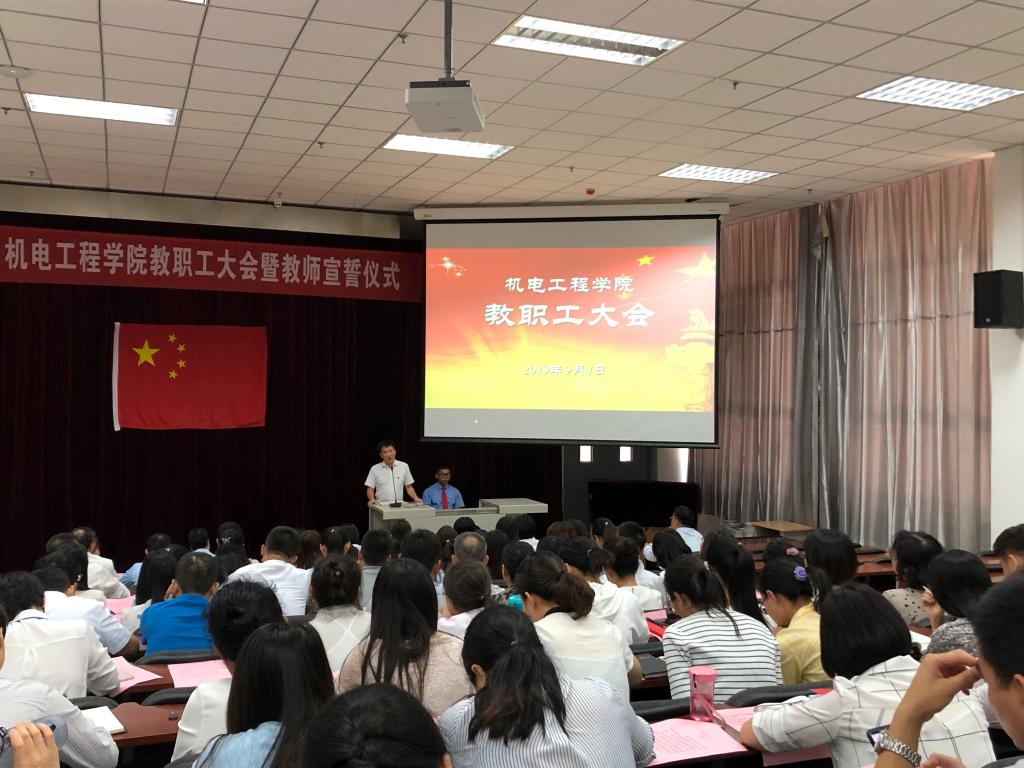 为进一步凝心聚力,鼓足干劲,营造新学期新气象,9月1日下午,机电工程学院在一楼阶梯教师召开新学期教职工大会。全体教职工共计73人参加了会议。会议由办公室主任邵泽宽主持。
