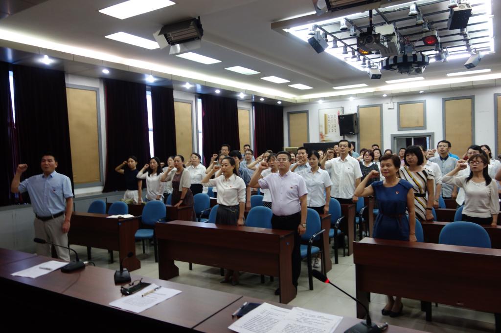 教师宣誓活动,提高了教师从业的神圣感和使命感以及教师团队的凝聚力,也进一步强化了教师要立师德以为范,重德育以树人,教书育人爱在先,修身养性德为本。不忘初心,牢记使命,模范遵守教师职业道德规范。