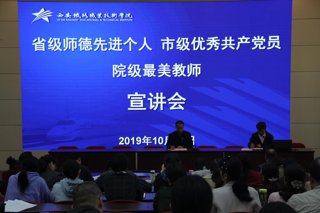 10月16日,在自强校区阶梯教室,交通运输学院党总支组织举办了“省级师德先进个人 市级优秀共产党员 院级最美教师”宣讲会,作为先进人物代表,王公强副教授结合自身发展,围绕专业发展、课程改革及学生就业等工作,用质朴的语言生动诠释了作为一名教师教育教学的初心和使命。