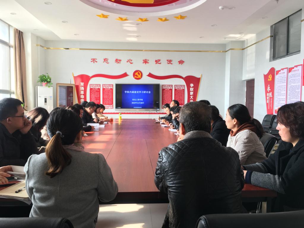 为传达学院内涵建设工作推进大会精神,引导教职工进一步统一思想、凝聚共识,11月28日,机电工程学院召开了内涵建设学习研讨会议,会议由机电工程学院院长代礼前主持。永利官网党总支书记张雅兰、教研室主任、各专业(学科)带头人和骨干教师参加研讨会。