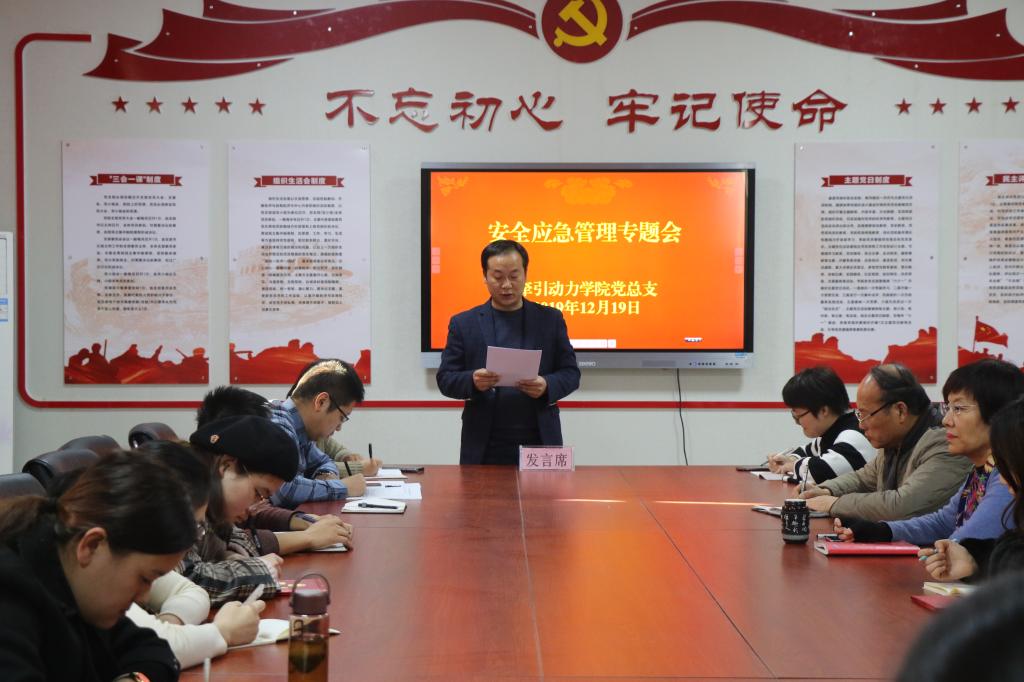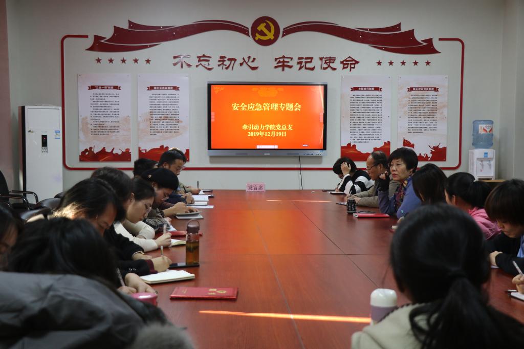 为加强处理紧急突发事件的技巧,确保全院师生的安全稳定, 12月19日,牵引动力学院党总支召开安全应急管理专题会。全体专兼职班主任、辅导员参加了此次会议。会议由牵引动力学院党总支书记和晋秦主持。