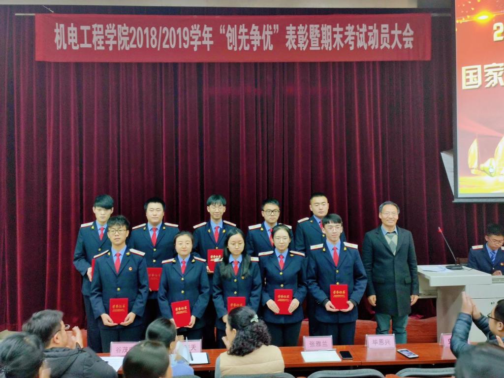 12月25日,机电工程学院召开2018-2019学年“创先争优”表彰暨期末考试动员大会。