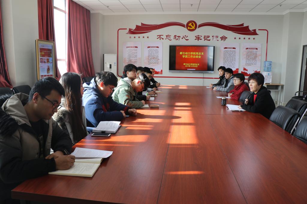 12月30日,牵引动力学院党总支在牵引楼召开学团工作总结会,牵引动力学院党总支书记和晋秦、团总支书记黄旌芮和学生会主席团、团总支书记处、办公室主任参加会议。