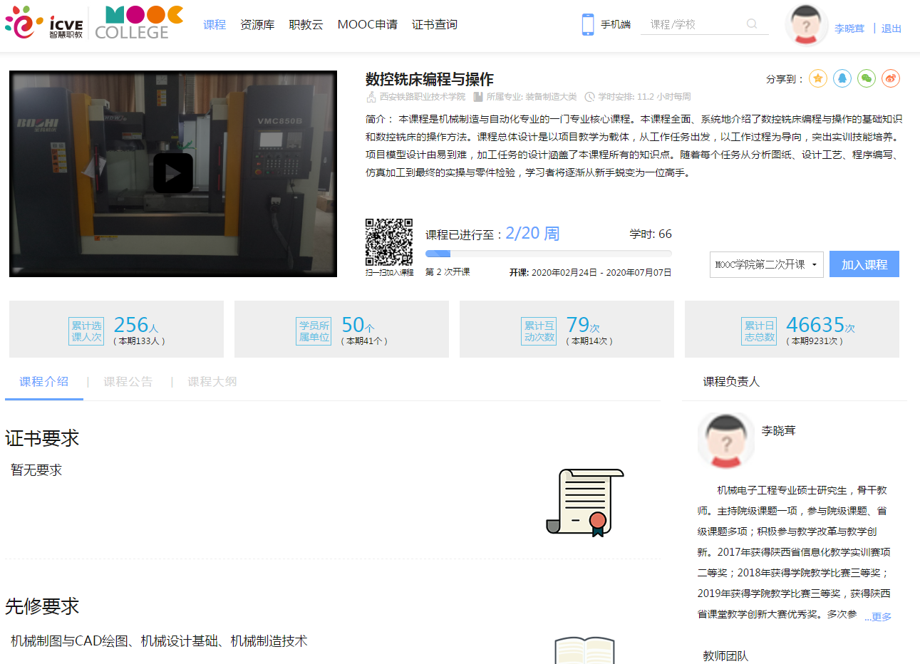 为了应对突如其来的疫情,学院要求落实“延期不延教、停课不停学”,并向社会公众及校内外学子免费开放永利官网的线上学习资源。教学第二党支部李晓茸同志第一时间作出响应,上报了自己主持建设的《数控铣床编程与操作》课程在线开课计划,并向智慧职教的mooc学院平台提交了开课申请,经过仔细核对修改,该课程顺利通过了平台的审核,如期开始第二轮开课。