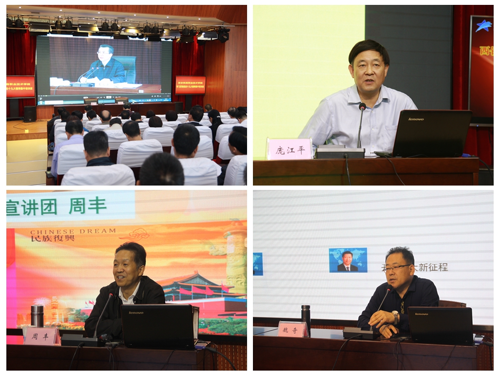 培训班集中观看了陕西省委常委、西安市委书记王永康学习宣传贯彻党的十九大精神专题报告《深入领会习近平新时代中国特色社会主义思想》和中央党校科研部副巡视员、教授洪向华的《中国共产党章程(修正案)》学习辅导录像片。学院邀请了市委讲师团团长庞江平、市委党校周丰、西北政法大学魏奇等教授专家从习近平新时代中国特色社会主义思想的丰富内涵、党的十八大以来党和国家事业发生的历史性变革、中国特色社会主义进入新时代的重大意义等方面详细深入地解读了党的十九大精神。参加培训的同志学习热情高涨,课堂秩序井然。在分组讨论会上,大家踊跃交流发言,谈学习体会,纷纷表示要把学习宣传贯彻党的十九大精神作为党员干部的必修课,自觉用习近平新时代中国特色社会主义思想武装头脑,指导实践,推进学院优质高职院校创建工作,办好人民满意的高职教育。
