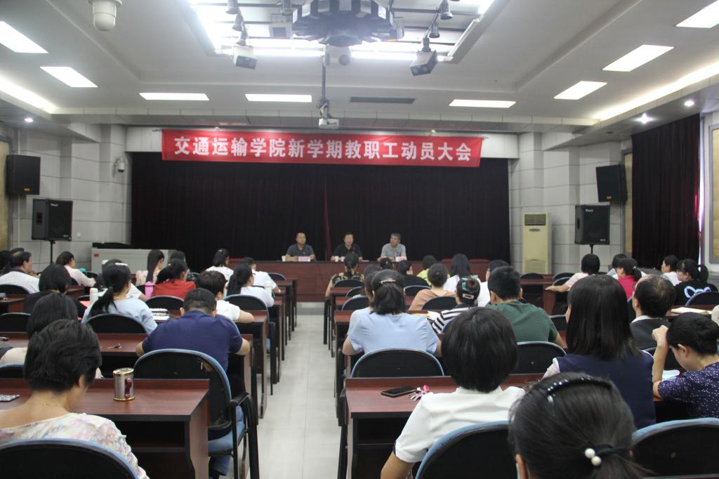 9月2日下午,交通运输学院在自强校区大电教召开学院第五届全员聘任后第一次全体教职工大会,总结回顾学院近年来在教育教学等方面取得的突出成果,安排部署本学期重点工作。全体教职工参加会议。会议由学院副院长王公强主持。