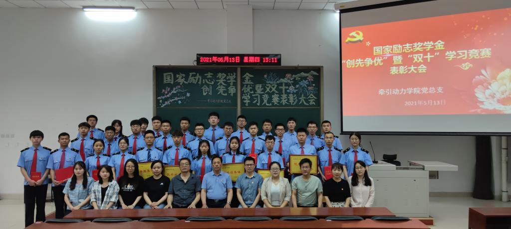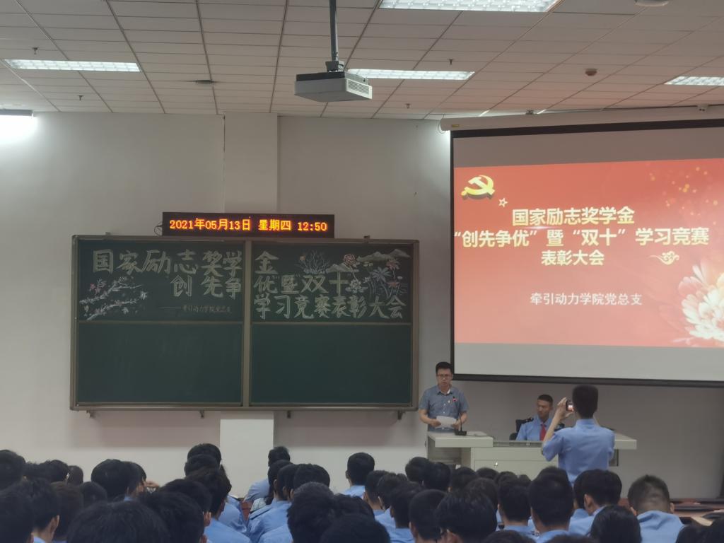 5月13日中午,牵引动力学院党总支在学院一楼阶梯教室举行国家励志奖学金获得者、创先争优暨“双十”学习竞赛表彰大会。牵引动力学院党总支书记李贞伟、学工办主任陈广勇、组织委员王燕萍以及辅导员、班主任代表和学生代表200余人参加了会议,会议由辅导员杨若主持。