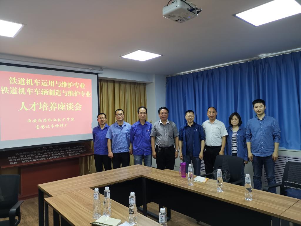 随后,李益民一行6人前往宝鸡机车检修厂召开了铁道机车运用与维护专业和铁道机车车辆制造与维护专业人才培养方案座谈会,听取企业专家修改和完善意见,共商“2+1”校企联合培养事宜。西安局集团有限公司职培部科长侯红军、宝鸡机车检修厂职教科科长雷鑫、技术科、材料科、检修车间等部门负责人、技术骨干以及大国工匠、火车头奖章获得者、永利官网往届优秀毕业生马会军、陈梁一同参加座谈、讨论。侯红军通报了全局各工种技能鉴定情况,既肯定了高职生基础较好,西铁院理论培训认真,效果好,强调要分析未通过职业技能鉴定理论考试跟岗实习学生原因,查缺补漏,注重现场实作和理论双提升。接着大家针对机车钳工、机车电工技能鉴定和学生动手能力、自主学习能力的培养,以及电力电子技术、PLC、钳工基础、应用文写作、机械制图、智慧驾驶、班组管理、新媒体运用等课程的建设,理实一体化教学,在线课的建设推广使用以及安全意识、人身安全、设备安全、职业安全等方面提出了大量实质性的意见和建议。