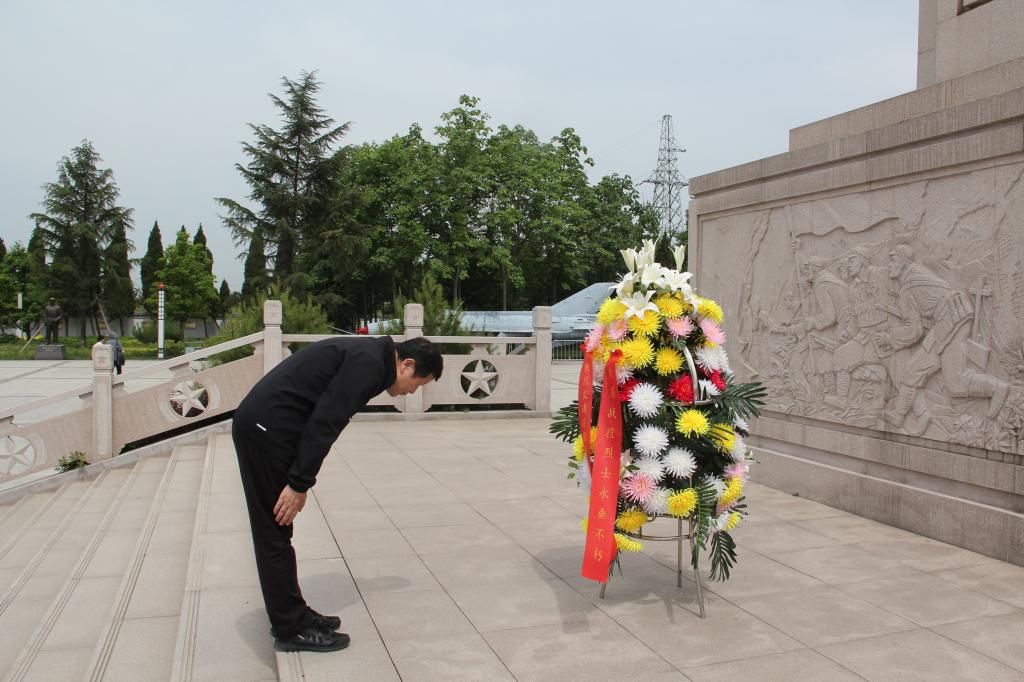 交通运输学院院长徐小勇代表全体党员向扶眉战役革命烈士敬献花篮,携全体党员向扶眉战役革命烈士行三鞠躬,表达对革命先烈的缅怀之情。