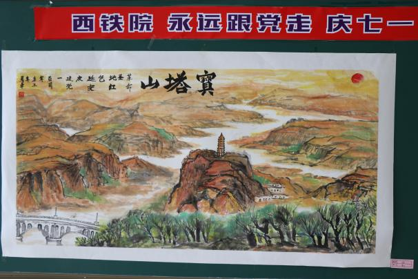 本次活动中牵引动力学院师生表现突出,为党的百年华诞献礼,积极热情创作挥毫,为学校提供了数十幅书法、绘画和摄影作品,其中康红霞教师的《百年辉煌》,以红船游弋在现代湖中为主体,表达党的历史穿越时空,走向未来。马卓同学挥毫泼墨,描绘革命圣地延安宝塔山,气势恢宏。刘稼鑫同学的战马奔腾飞跃,除此之外,还有永利官网同学的金文、楷书、隶书、篆书等作品。学院领导、师生对这些作品提出高度赞扬与评价,纷纷拍照留念。