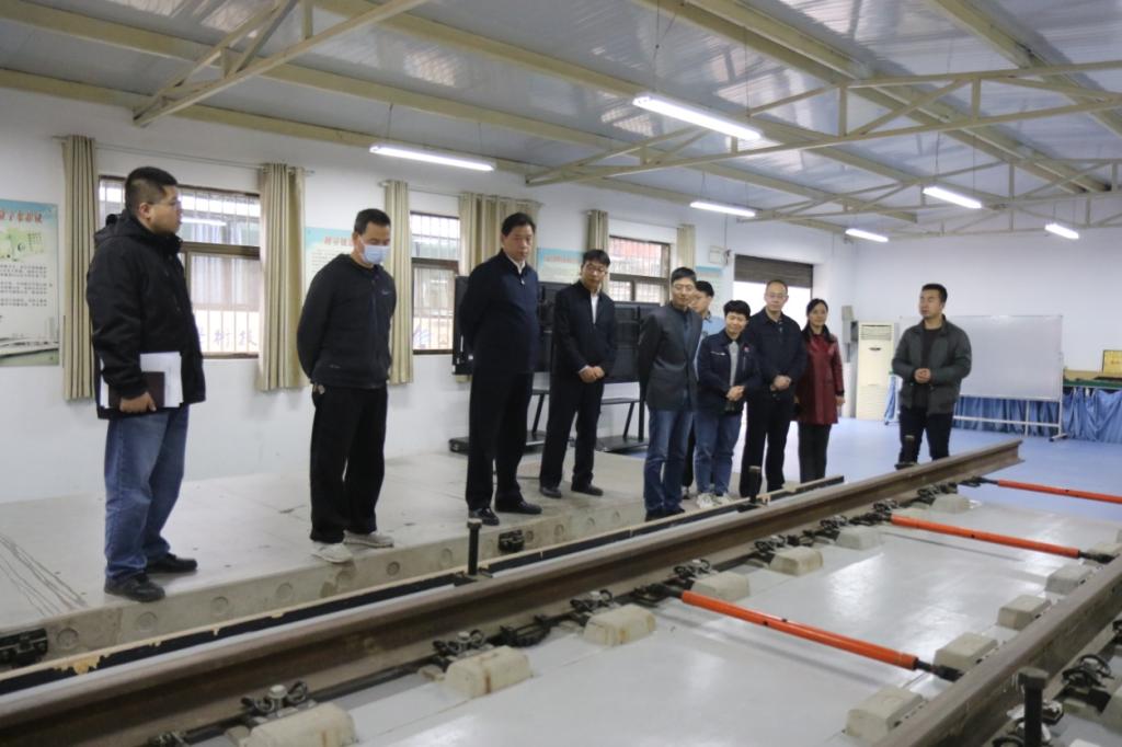 温克军一行首先参观了校区钢轨探伤演练场、无砟轨道精调与检测实训基地、桥梁演练场等实训室,实地查看了解了校区实训设施设备和项目开展等方面情况。