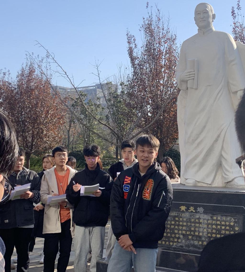 在黄炎培雕像前,学生们讲述了黄炎培的职业教育思想的形成和发展,也重点学习了习近平总书记4月13日对职业教育工作作出的重要指示。铁道车辆2103班刘思桐表示,要刻苦学习,把个人理想融入社会理想,努力成为轨道交通行业的高素质技术技能人才,向能工巧匠、大国工匠不断迈进!