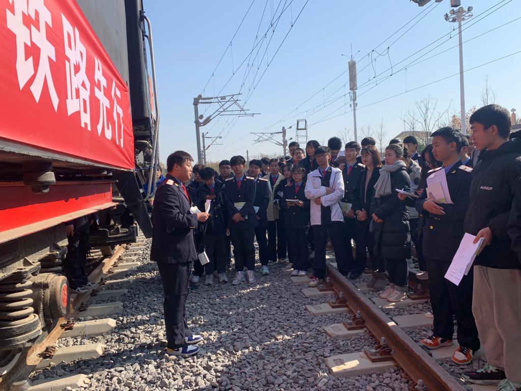 在港务校区实训场,学生们通过学习蒸汽机车、内燃机车、电力机车的基本概况,了解了新中国成立后我国铁路行业的发展历程。在这一环节还运用了朋辈思政的方式,学长学姐为大一学生简单介绍了专业知识,分享学习经验,交流成长心得。同龄人的讲解更容易产生情感共鸣,动车组驾驶2102张鹏新表示,在这些机车和车辆前上课,第一次感觉与未来的工作距离如此近,责任感和使命感油然而生。