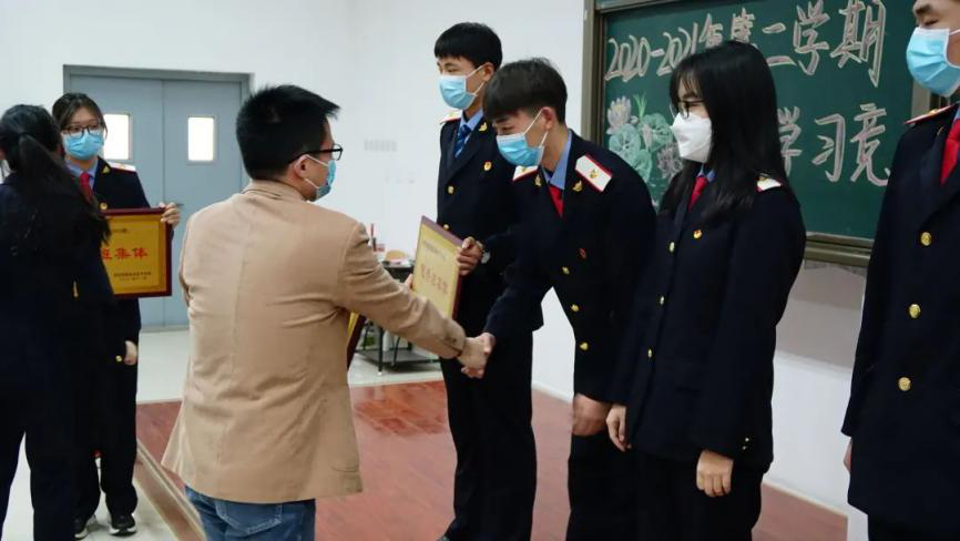 学工办陈广勇为获奖代表颁发“优秀班集体”