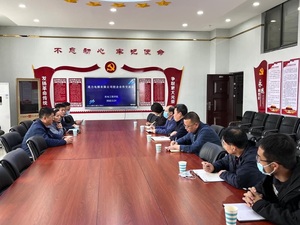 为进一步扩大产教融合,探索校企双赢途径,3月31日下午,通力电梯有限公司西北片区人力资源部部长孟建红一行四人来学院,就校企合作进行了座谈交流,座谈会在机电工程学院701会议室举行。机电工程学院院长代礼前、电气工程学院院长李栋,副院长张秀红、机电工程学院副院长郭峰以及相关专业带头人和辅导员参加了会议。