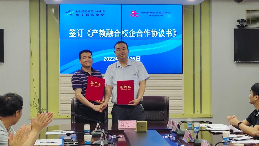 为深化校企合作,实现校企联动、协同育人,5月25日下午,电子信息学院与公诚管理咨询有限公司陕西分公司在永利官网自强校区第三会议室开展校企合作签约授牌仪式暨党支部联建共建主题党日活动。公诚管理咨询有限公司陕西分公司总经理邵宏平、第一党支部书记潘文晓、项目经理杨松涛以及6名支部党员受邀参加活动,学院校企合作处副处长马建萍、副科长朱彤、电子信息学院党总支书记吴西蒙、副院长冯国良参加活动,大数据党支部书记杨国荣及15名支部党员、教师代表参加活动。