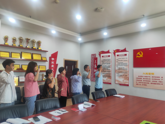 马纪带领全体党员面对鲜红的党旗,庄严的举起右手,重温入党誓词,进一步坚定理想信念,强化讲党性、重品行、作表率意识。
