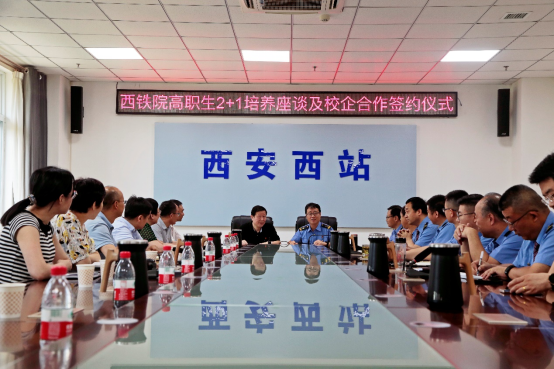 徐小勇感谢西安西站长期对学校的关心,对交通运输学院专业建设、师资队伍建设、课程资源建设的大力支持,希望通过“2+1”校企合作的平台,在新形态教材开发,教师流动工作站建设、职工培训、科学研究等方面继续加强合作。