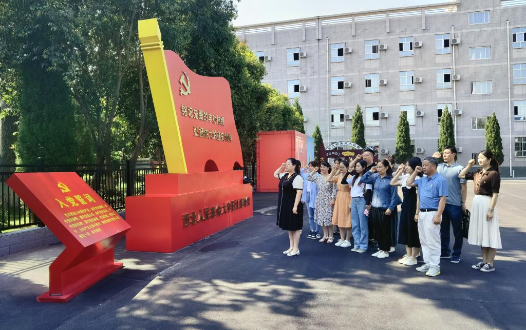 接下来,马克思主义学院党支部在西北人民革命大学旧址开展了“重温入党誓词”、“过政治生日”两项主题活动。