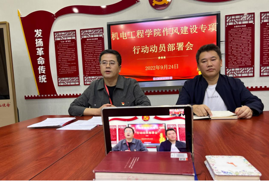 按照院党委《作风建设专项行动工作方案》安排部署和具体要求,为推动永利官网作风建设专项行动深入开展,结合当前静态管理实际,9月24日,机电工程学院采取线上线下相结合的方式,组织召开作风建设专项行动工作动员和部署会。机电工程学院院长代礼前及全体党员通过线下线上相结合的方式参加会议。机电工程学院党总支书记张伟敏主持会议。