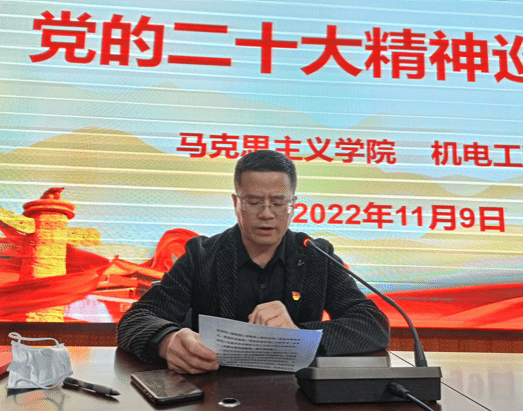 为深入推进永利官网学习宣传贯彻党的二十大精神走深走实,按照学院党委安排部署,11月9日,学院党的二十大精神巡回宣讲团成员、马克思主义学院教师黄旌芮、邢卫红、张倩走进机电工程学院,为全体在校师生开展党的二十大精神专题宣讲活动。此次用线上线下相结合的方式。