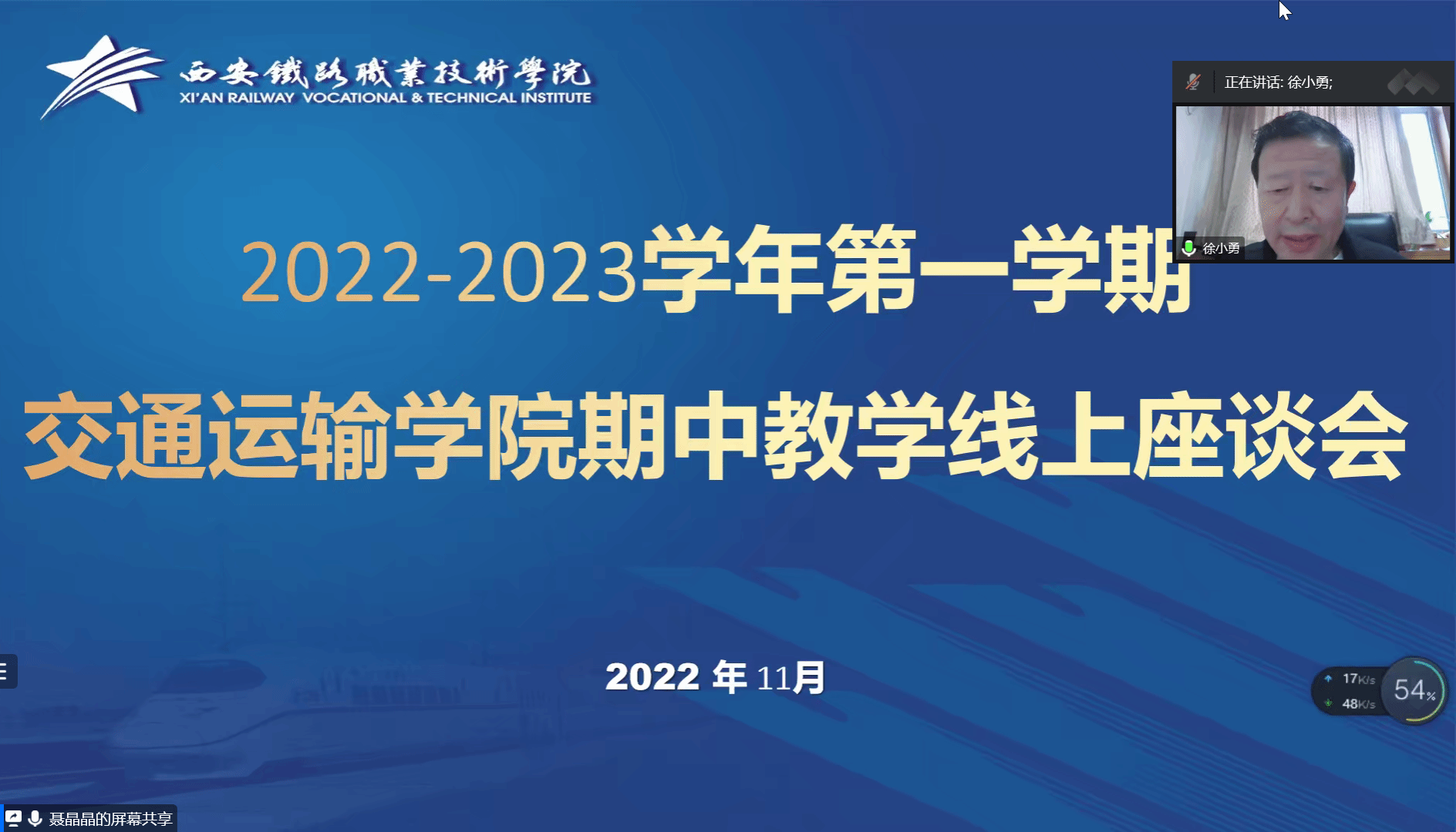 为了保证永利官网教学工作的顺利开展和教学秩序的正常运行,及时发现、改进教学工作中存在的问题,促进学院的发展建设,充分落实以学生为本、全面发展的理念,11月9日下午,交通运输学院通过腾讯会议组织召开了2022-2023学年第一学期期中教学检查线上座谈会。交通运输学院院长徐小勇、书记任卫东、副院长王公强、两办主任、各教研室主任、基础部办公室主任李康、永利官网47个班级50余名学生代表参加了座谈会。会议由交通运输学院办公室主任薛青娜主持。