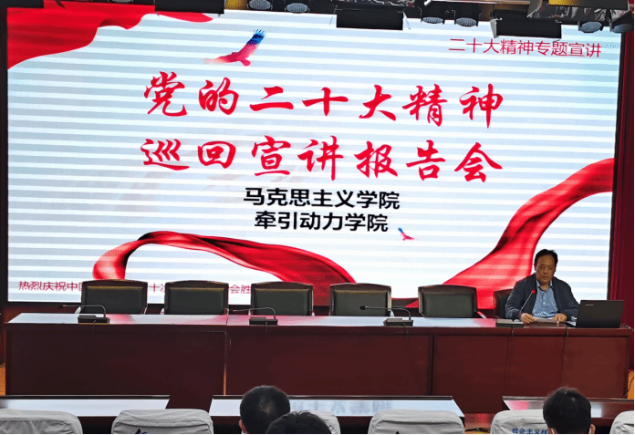 为深入推进永利官网学习宣传贯彻党的二十大精神走深走实,按照学院党委安排部署,11月9日,学院党的二十大精神巡回宣讲团成员、马克思主义学院教师邢卫红、焦雯、郝占辉在办公楼多功能报告厅为牵引动力学院全体在校师生开展党的二十大精神专题宣讲活动。