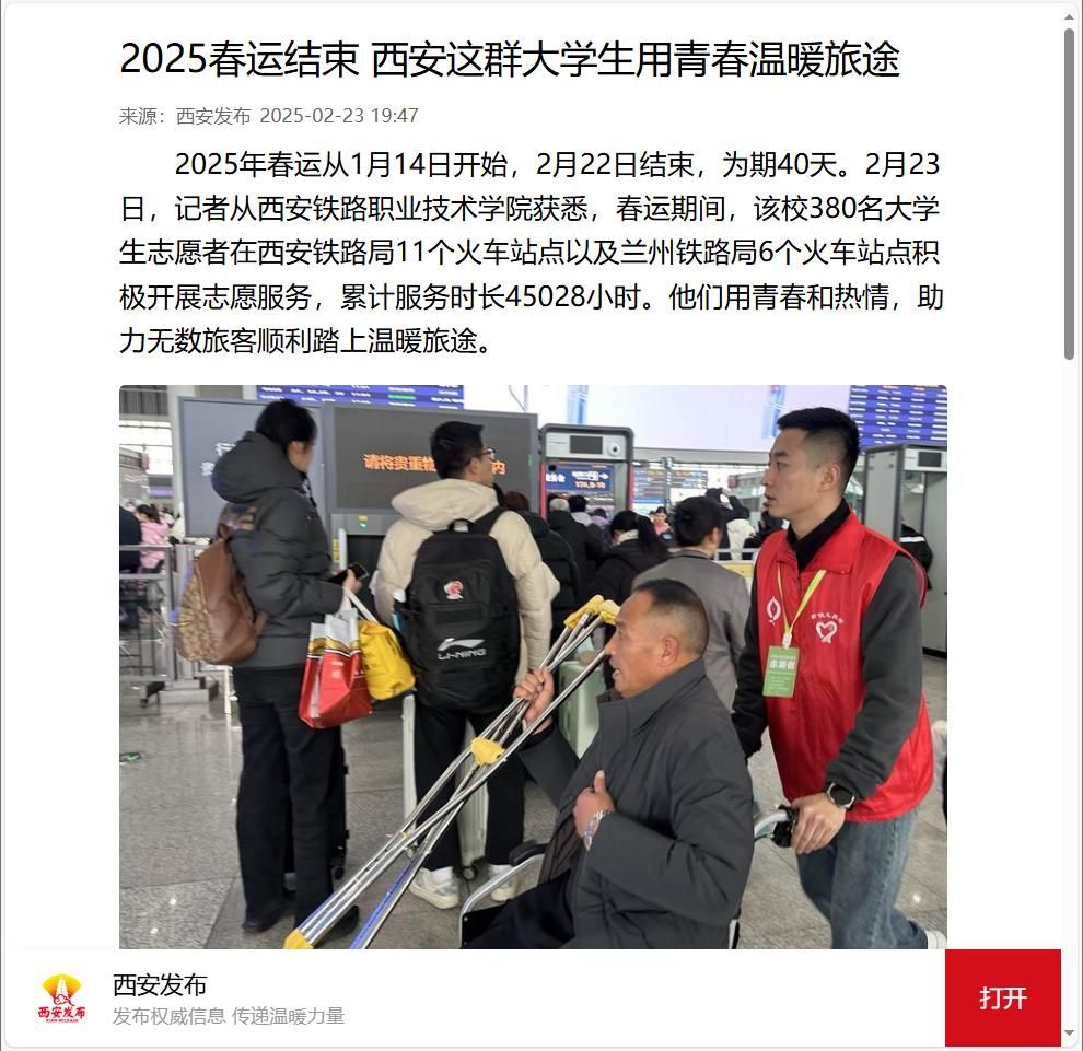 西安发布:2025春运结束 西安这群大学生用青春温暖旅途