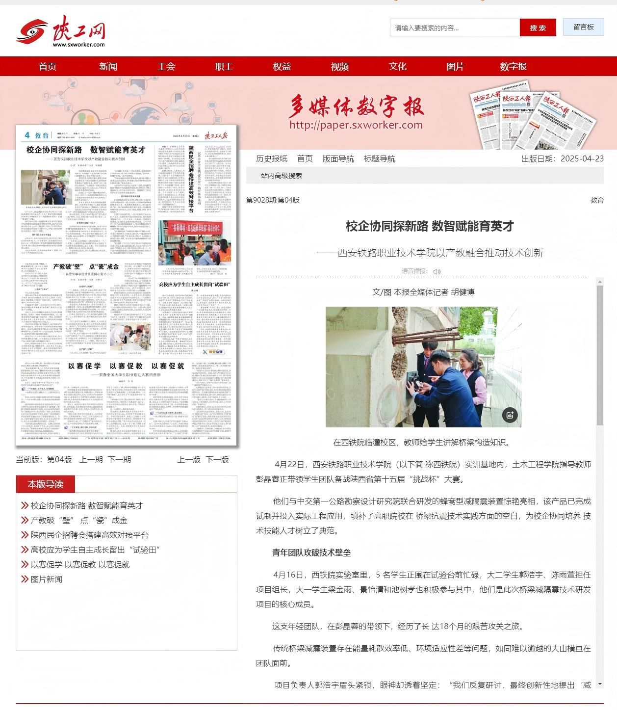 陕西工人报:校企协同探新路 数智赋能育英才——304am永利集团官网以产教融合推动技术创新