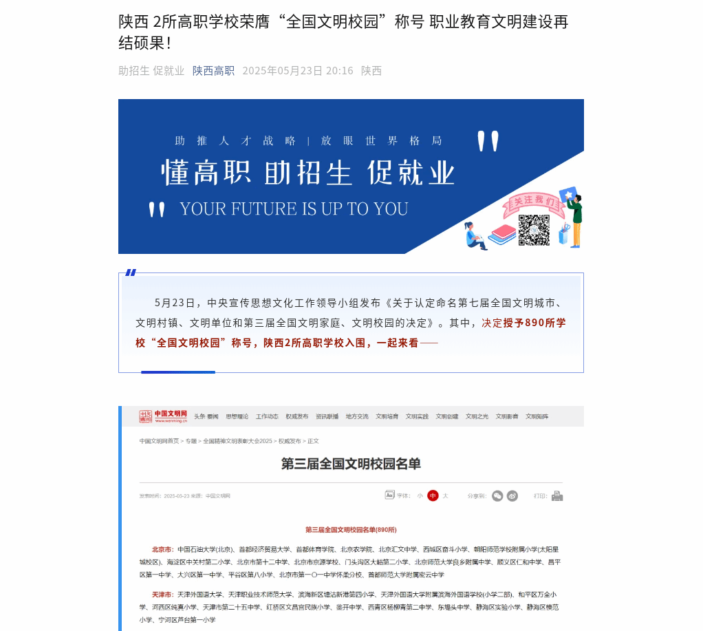 304am永利集团官网 荣膺“全国文明校园”称号 职业教育文明建设再结硕果!