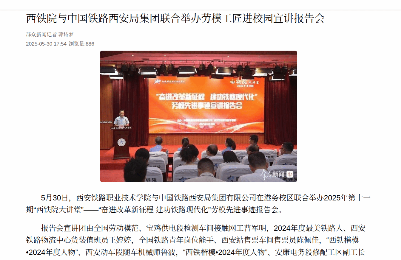 西铁院与中国铁路西安局集团联合举办劳模工匠进校园宣讲报告会