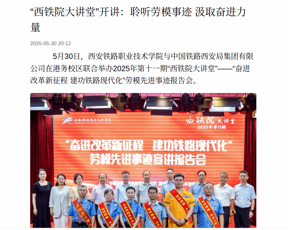“西铁院大讲堂”开讲:聆听劳模事迹 汲取奋进力量