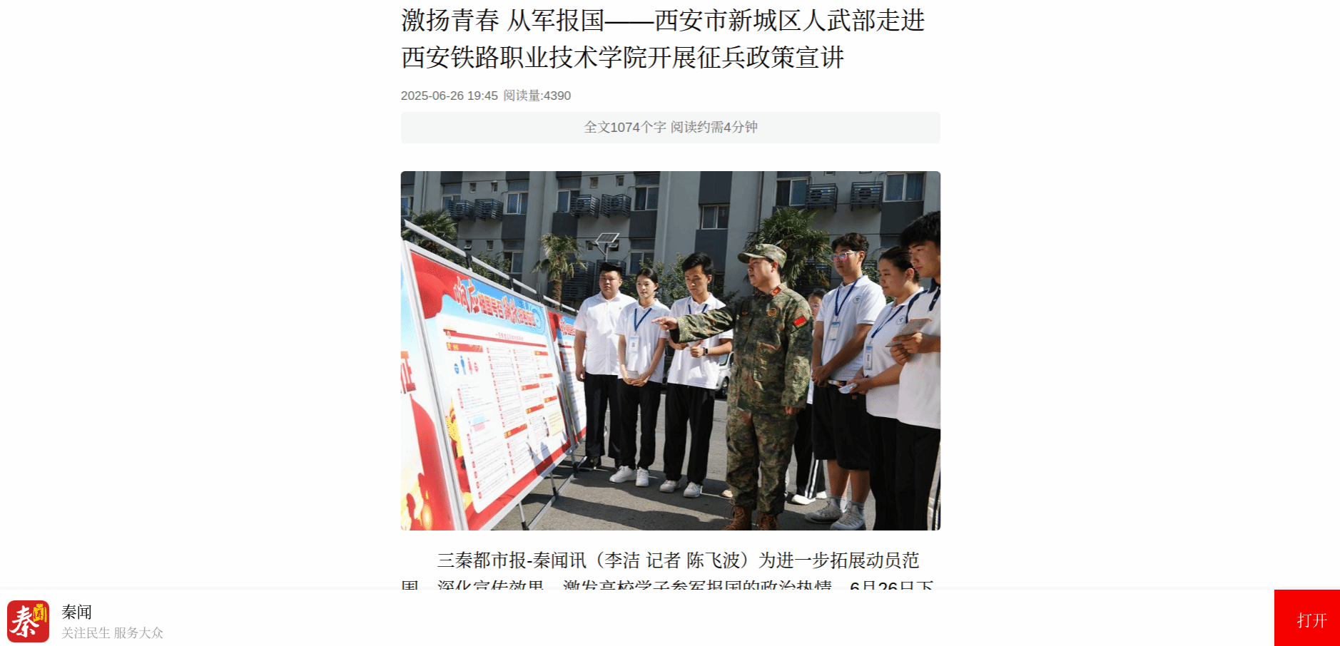 激扬青春 从军报国——西安市新城区人武部走进304am永利集团官网开展征兵政策宣讲