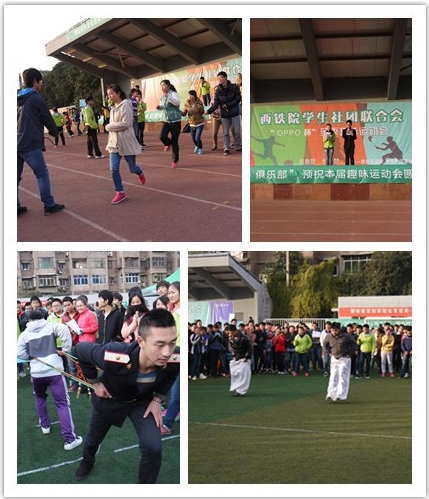 首日的跳大绳预赛,各代表队同心协力、激烈争夺,最终,魔幻达人社、风行轮滑社携手梦醒话剧社、电子信息系团总支代表队名列前三甲。第二日的“袋鼠跳”预赛中各队队员奋勇争先,青年志愿者协会以11秒14的成绩夺得榜首,并一路高歌取得第四日决赛的冠军。第三日,“背水一战”的预决赛在阵阵欢笑中进行着,各代表队奋力拼搏,由“西铁院opppo Faceo俱乐部”摘得桂冠,电气工程系团总支与心理健康协会分居亚、季军。最后社团联合会部还为夺得名次的各代表队颁发了“最佳风尚奖”、“最佳组织奖”等多个奖项,至此,西铁院学生社团联合会“oppo杯冬季趣味运动会”完满落幕。