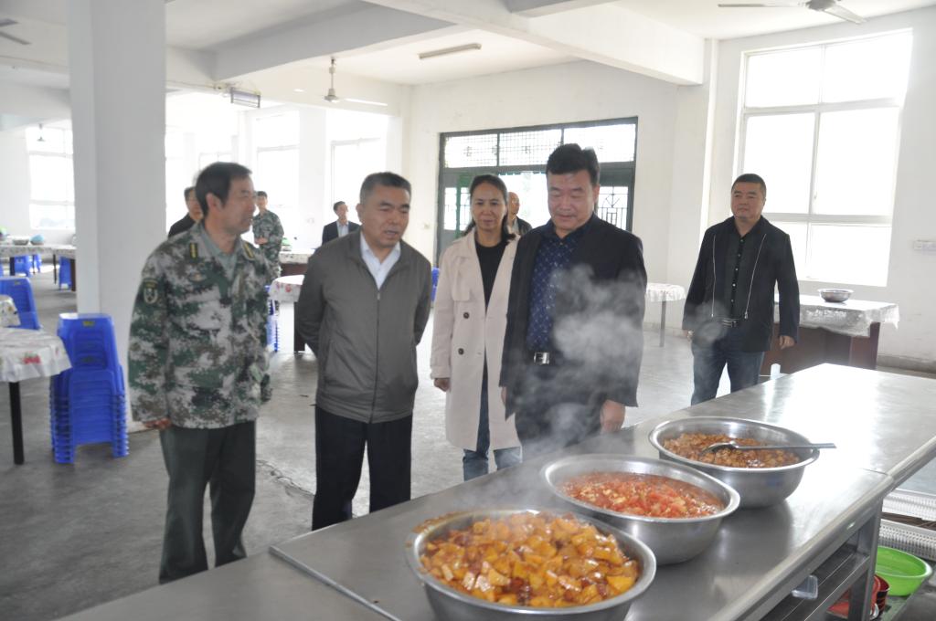 随后,黄家昌详细听取了驻地负责人、学院党委学生工作部副部长高阿联的工作汇报,他就开训以来的训练情况、活动开展情况、连队建设、病号管理、宣传报道、内务整理等工作进行汇报。黄家昌对此次军训已经取得的阶段性成果给予了充分肯定,并对接下来的军训组织工作提出了三点希望:一是要向解放军学习“带兵”的经验,通过这次军训学习带好一个班集体,使其具有强大的凝聚力;二是要向解放军学习“精气神”,通过这次军训的历练,让班集体保持一种蓬勃向上的精神面貌;三是要珍惜军训生活,以更高的标准完成好后期的训练工作。基地领导也高度评价了永利官网严谨求实、扎实细致的军训团工作,以及参训学生精神饱满的训练状态,表示将继续科学施训、严格管理,圆满完成后续军训任务。接着,黄家昌一行深入到学生宿舍、食堂等地进行了走访,检查了学生的内务整理情况,了解了师生的饮食和医疗保障情况,看望了病号连的学生,并与部分学生进行了交谈,对各二级学院在紧张的军训期间,创办的一幅幅精美展板表示了赞赏和鼓励。